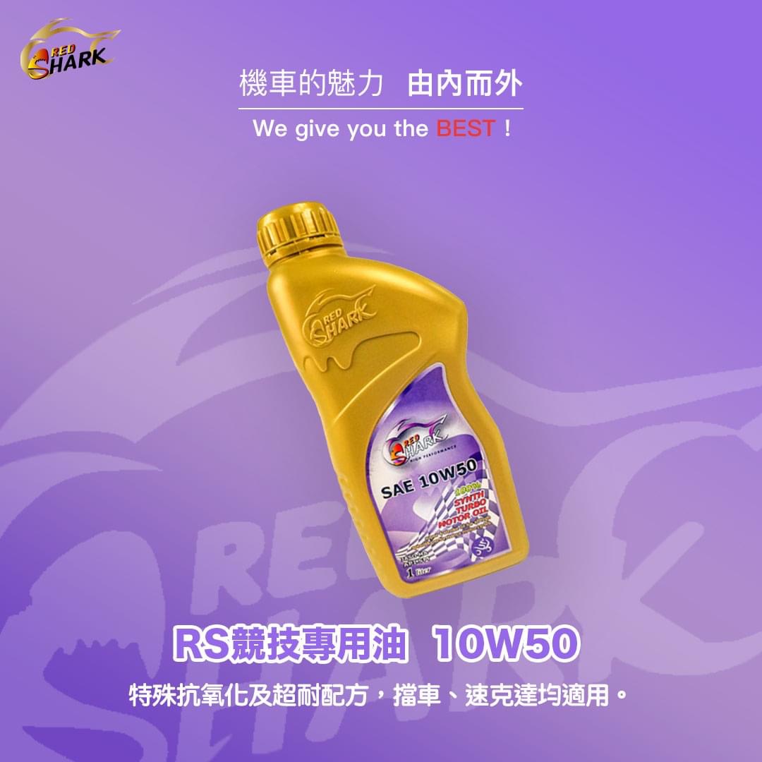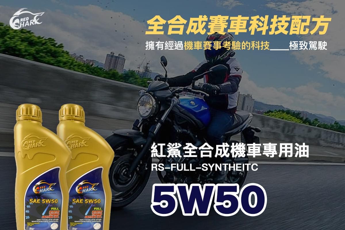 紅鯊全合成機車專用油RS-FULL-SYNTHEITC-5W/50全合成賽車科技配方加上PAOR及ESTER多元酯潤滑技術,優異的抗剪力與極佳的黏溫性,能提供引擎、齒輪箱與離合器最佳的保護之外,亦能提供賽車級的加速性能。